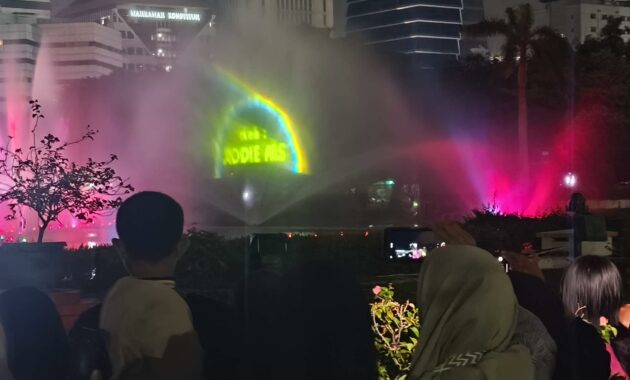 Monumen Nasional (Monas) menyuguhkan atraksi Air Mancur Menari dan Video Mapping sebagai bagian dari rangkaian menyambut pergantian malam Tahun Baru 2026.