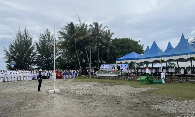 Menteri Koordinator Pemberdayaan Masyarakat (Menko PM), Muhaimin Iskandar memimpin apel peringatan Hari Santri 2025 di Tugu Titik Nol Peradaban Islam Nusantara, Barus, Sumatera Utara. Dia hadir mengenakan kemeja merah putih, sarung hijau, dan kopiah hitam.