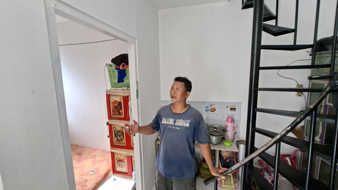 Hunian gratis yang dibangun dari kerja sama BUMN di bawah Kementerian Keuangan itu tidak begitu besar untuk ukuran rumah deret. Ada dua lantai dengan ukuran masing-masing sekitar 4×5 meter.