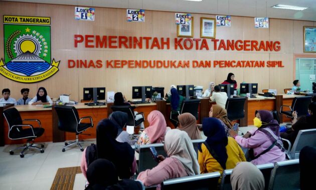 Seperti yang terpantau di Pelayanan Dinas Kependudukan dan Pencatatan Sipil (Disdukcapil) Kota Tangerang, antrean warga yang ingin mengurus berkas kependudukan, sudah meluar, meski jam masih menunjukan jam 08.00 WIB.