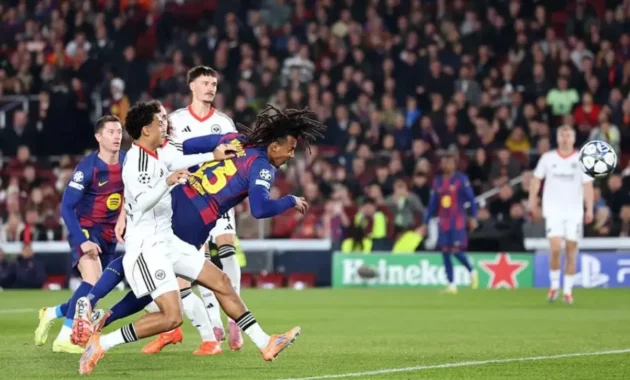 Barcelona berhasil membalikkan keadaan dan menang 2-1 atas Eintracht Frankfurt di matchday ke-6 Liga Champions 2025/26 di Camp Nou, Rabu dini hari WIB. Bek Jules Kounde menjadi pahlawan dengan dua gol sundulannya di awal babak kedua.